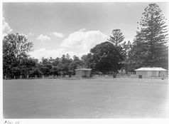 The change room & stores shed is a small, timber-framed and -clad rectangular freestanding one-storey building to the west of the cafeteria. Built to accommodate a change room for patients and two storerooms to service the surrounding vegetable fields, it is highly intact and in 2020, is used as a storeroom. Its original boarded doors have been removed/replaced, and its original roof cladding has been changed from corrugated asbestos sheets to corrugated metal sheets.