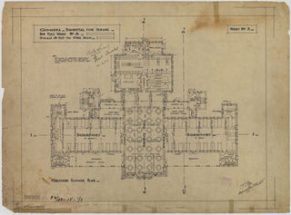 The middle wing has a row of single patient rooms and a large day room with a verandah on its southeastern side.