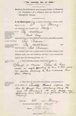 Admission notice and medical reports for Carl Anderson or Andersen from Denmark, who was discovered wandering in Beaudesert.
